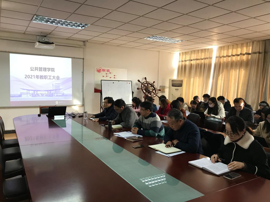 在德济楼508会议室召开2021年度教职工大会。学院党委书记胡永远主持会议。全院教职工参加会议。