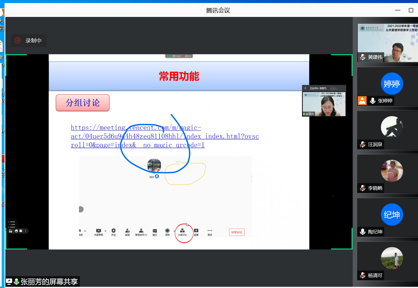 学院梁誉老师、方超老师、张芳怡老师、张丽芳老师、宣超老师、戴凤燕老师等六位青年教师结合所授课程对腾讯课堂、雨课堂、学习通等在线教学工具做了细致、详尽的演示和讲解。