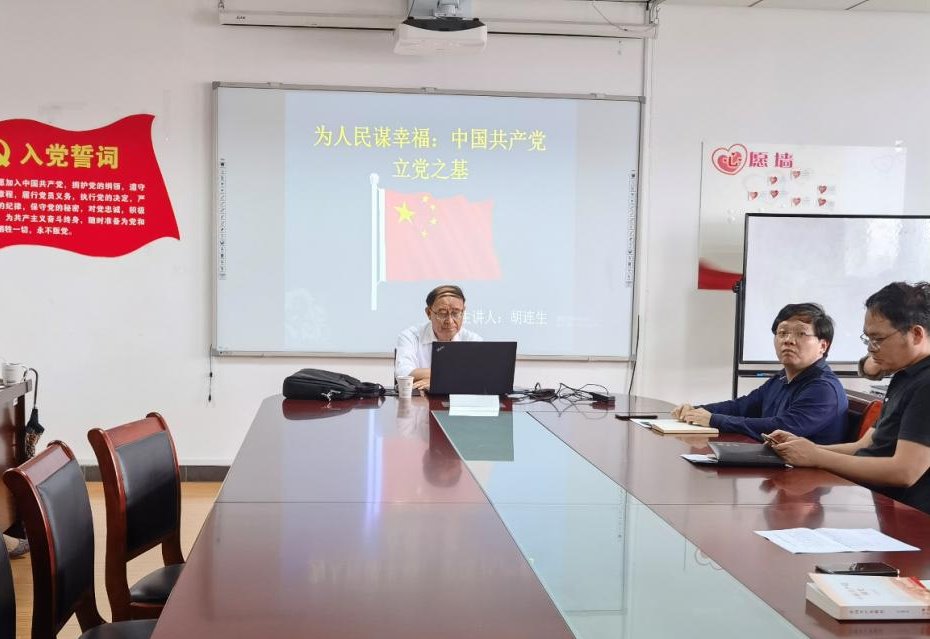于德济楼508开展教工党员党史学习教育,本次会议由胡连生教授主讲,全体教职工党支部成员参会。