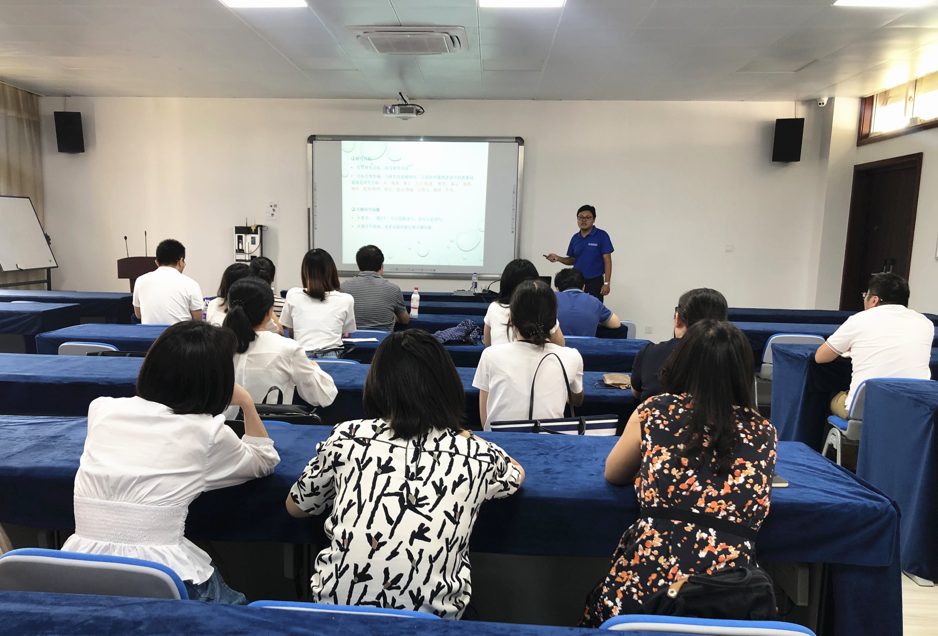 朱青研究员以做生日蛋糕步骤为例,深入浅出的类比了如何撰写自然科学基金申请书。首先,从如何思考自然科学基金研究的IDEA、破题(研究目标与关键问题)、研究内容分解、研究方法设计、创新点提取、研究意义与进展、其他相关内容补充等7个方面详细的阐述了国家自然科学基金申请书写作的关键步骤。随后,朱青研究员以相关案例逐一的介绍了基金申请书每一步部分的撰写要点和注意事项。最后,朱青研究员和与会教师就自然科学基金撰写、申报及资助后如何执行等问题进行了深入的探讨与交流。