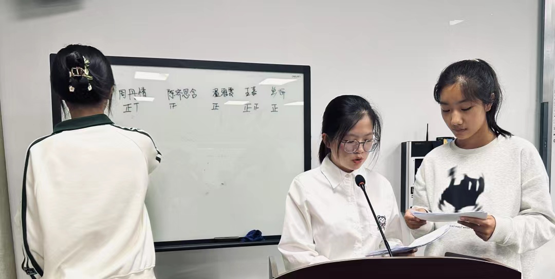 第二项议程——投票选举,各班级代表们认真听取8名候选人的发言后,进入严肃的匿名投票环节,并由主持人进行严格的计票。
