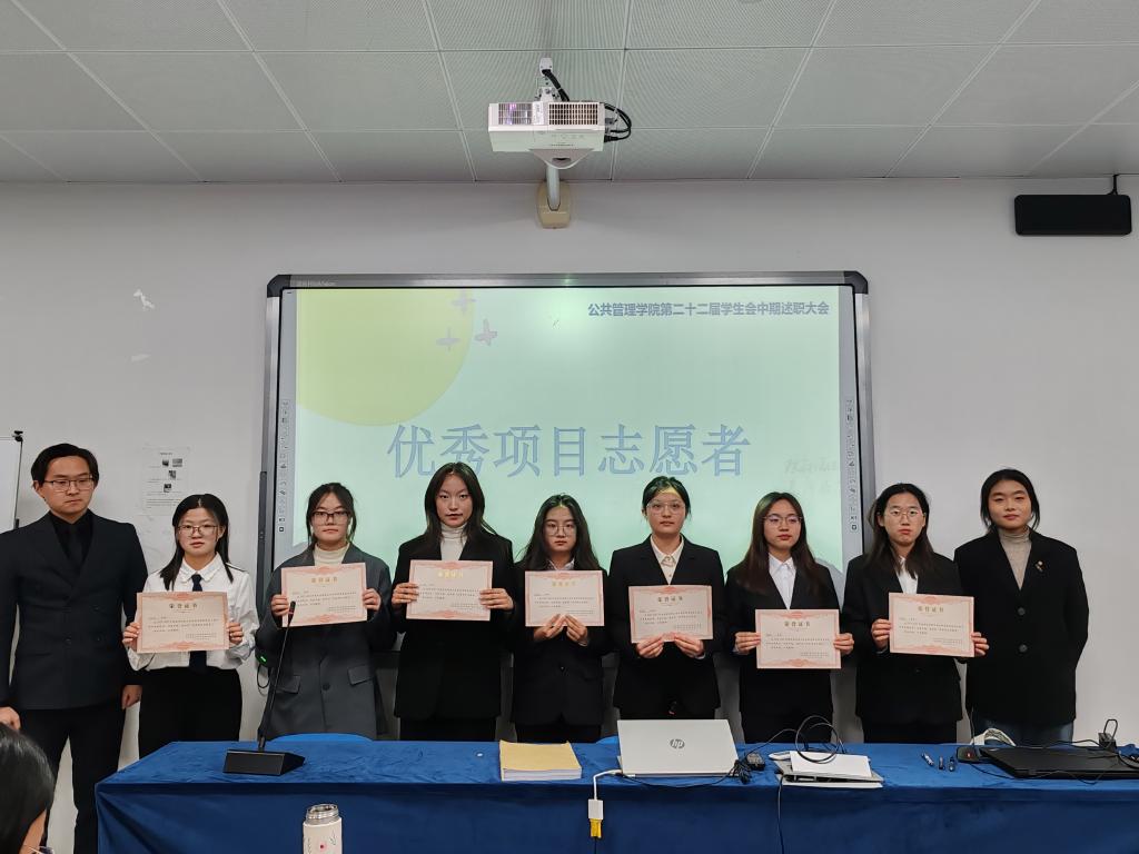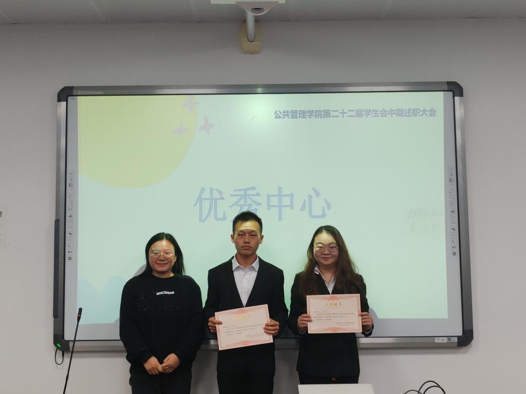 学生会主席团成员为他们颁奖。颁奖环节结束后,大家一起进行了集体合照。