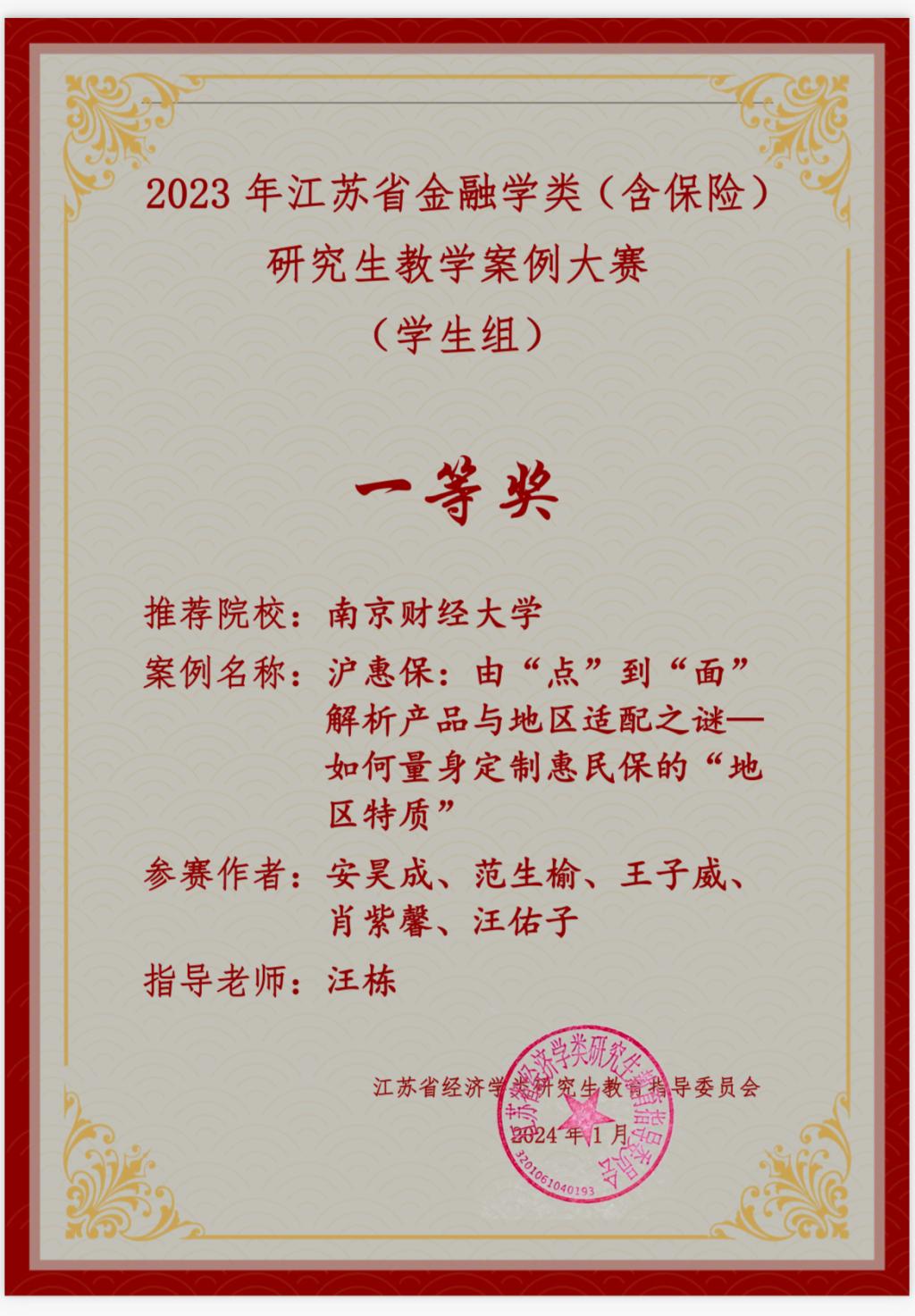 3月12日,由江苏省经济学类研究生教指委主办的江苏省金融学类(含保险)研究生案例大赛公布结果,韩国漫画 21级应用经济学研究生王子威、23级公共管理学研究生肖紫馨、安昊成的保险类分析作品《沪惠保:由“点”到“面”解析产品与地区适配之谜——如何量身定制惠民保的“地区特质”》荣获江苏省一等奖。