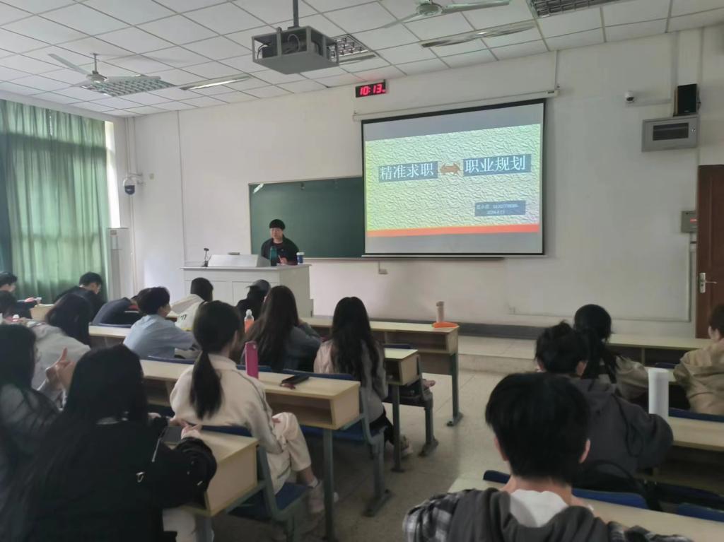 莫老师从当代年轻人求职现状出发,分析当代年轻人焦虑的本质原因:不了解、不确定、不受控。她鼓励同学们精准求职、调整心态并找准定位,做好充分准备,同时积极跟进,进而做出科学判断。随后,莫老师为同学们讲解了明尼苏达工作适应论,并就如何调整心态、找准职业定位等问题给予了一些建议。