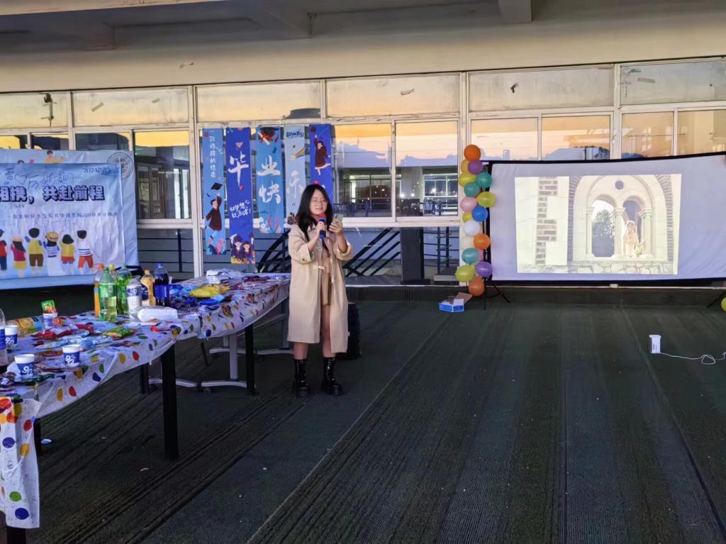 不知以何种心情来到五楼的草坪,初入校园时的毕业遥遥无期,转眼就要各奔东西,最后抛开所有思绪,用真挚与愉悦去对待最后的时光。饮水思源,匆匆四年,也忘不了导员与老师的陪伴,尽情的与老师相拥,感慨老师的不易。学子上台深情歌唱,唱的是“欲买桂花同载酒,终不似,少年游”的潇洒恣意;唱的是“春风得意马蹄疾,一日看尽长安花”的意气风发;唱的是“恰同学少年,风华正茂:书生意气,挥斥方遒”的豪情壮志。唱给自己已逝的青春,也是唱给美好的未来。老师倾吐绵延,回味着学生初来时的模样,四年又四年,他们如卷卷浪涛,送走了一群又一群船帆。四季相伴,走过春日的小路,欣赏过夏日的繁星,感受过秋日的落叶,玩闹过冬日的飞雪。照片一次次定格,那是属于我们独一无二的匆匆岁月,拿起一包零食同好友分享,拿起手机为死党拍照,看着屏幕上滑动的青葱过往,款款的暖流滋润心间。毕业晚会,给毕业季留下最难忘的点缀,书页翻过,韶华逝去,友情长存,愿毕业学子能够轻装上阵,勇敢地去做所热爱的事情。