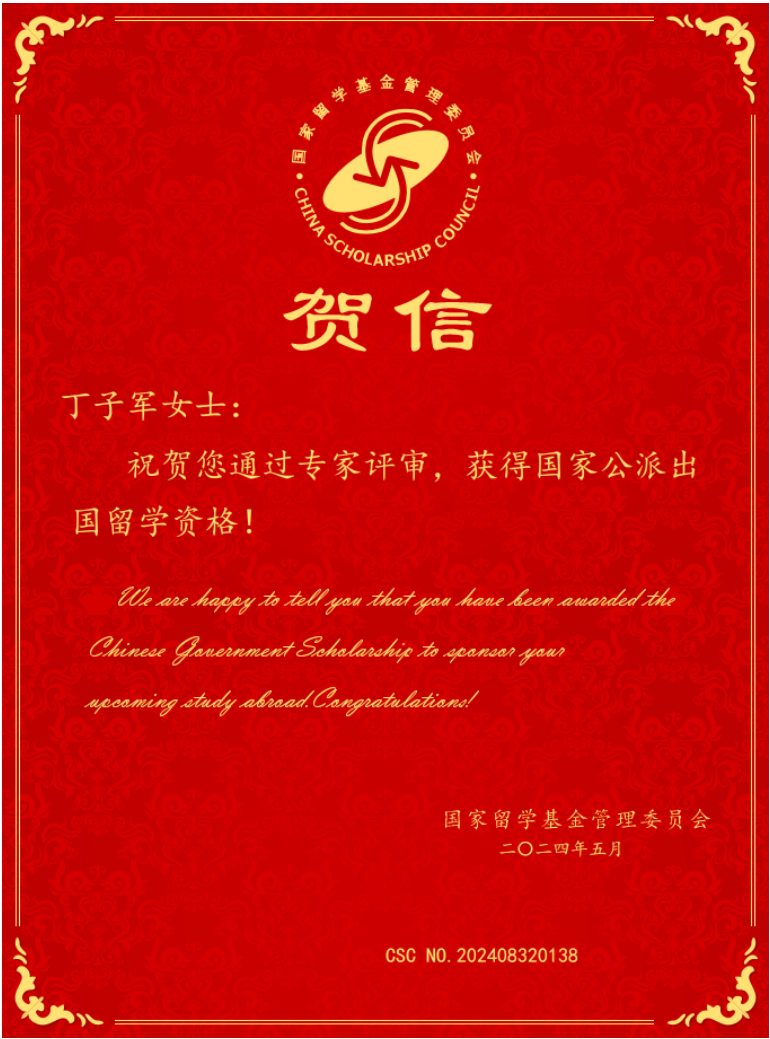 图1 国家留学基金管理委员会贺信