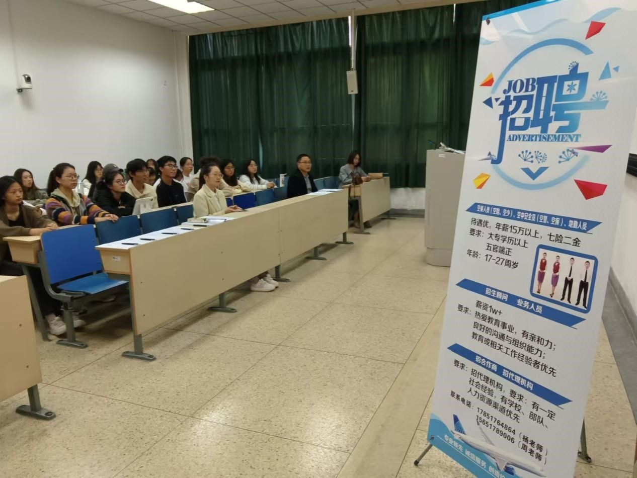 宣讲会现场,北京智库苑的相关负责人详细介绍了空乘岗位的职责要求、招聘标准、飞行生活和薪资待遇,强调了其对空乘人员专业素养和服务意识的高度重视,同时也展示了空乘相关工作的广阔发展空间和优厚福利。