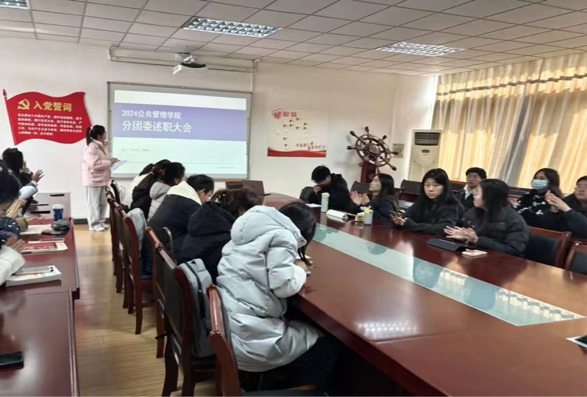 团委于德济楼508开展述职大会,院团委书记于华,院团委副书记,以及各部门部长、部员参加。