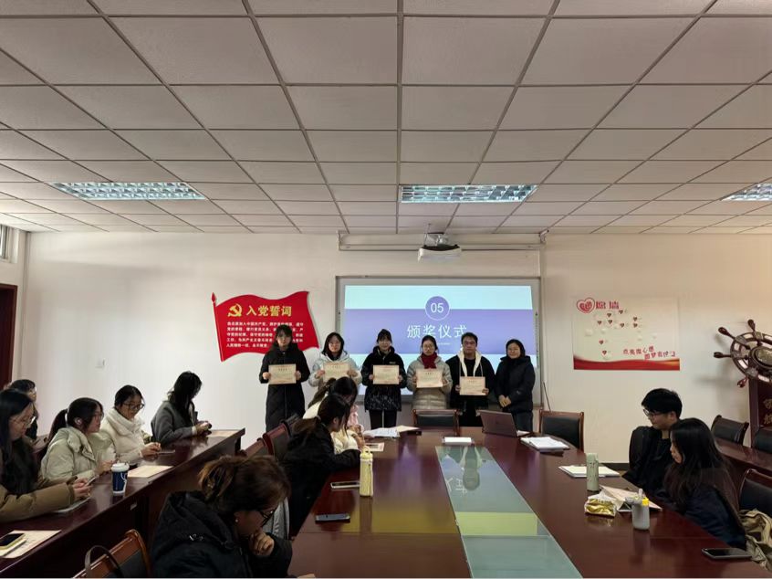 于华老师为本学期的优秀部员和部长进行颁奖,并鼓励部员和部长们今后继续积极工作,改正不足,为学院做出贡献。颁奖名单如下: