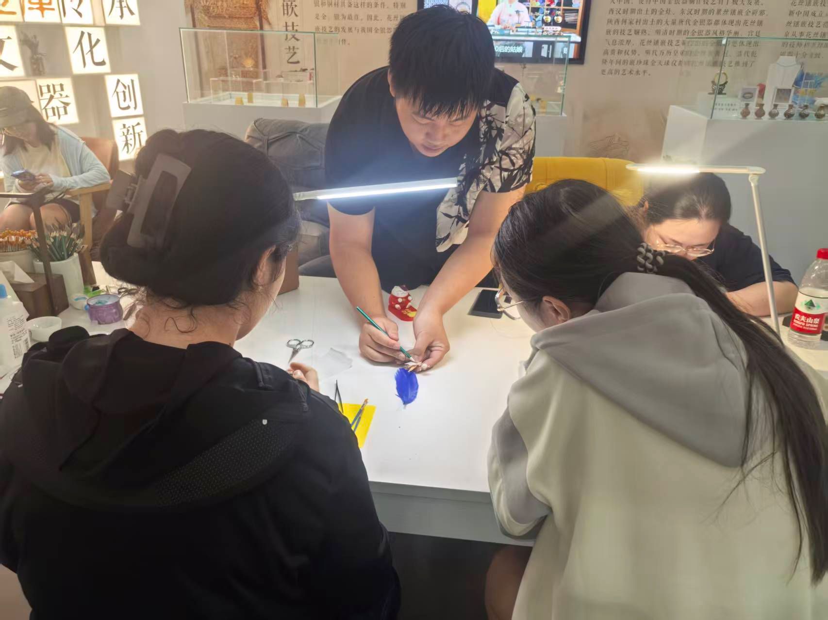 8月15号上午,文化传承团来到了南京秦淮博物馆,活动现场,博物馆的非遗传承人首先为大家详细讲解了点翠工艺的历史渊源、文化内涵和制作流程。当展示出那些历经岁月却依然光彩照人的点翠饰品时,参与者们被其精美绝伦的工艺深深震撼。“以前只是在书本或影视作品里听说过点翠,亲眼看到实物才知道它有多美,每一根羽毛的排列都像是有生命一样。”一位参与者感慨道。