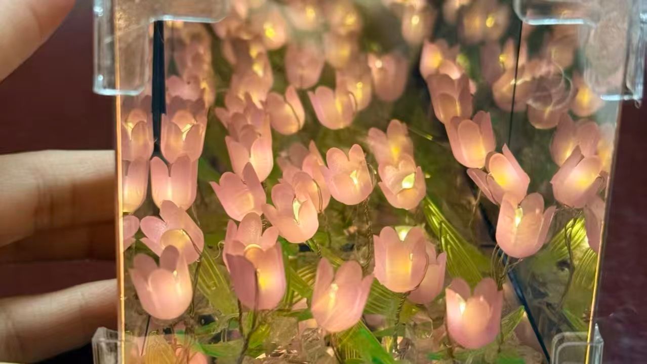 如果说知识问答是一次智慧的碰撞,那么活动的第二部分,创意手工制作,则是一场心灵的放松。在工作人员的指导下,同学们动手制作了郁金香花海小夜灯作为节日礼物。从材料的挑选到构件的拼接再到灯光的调试,大家在细致操作中享受创作的乐趣,在专注投入中感受手作的温度。一盏盏小夜灯在大家的巧手中逐渐成型,整个活动现场弥漫着温馨与静谧的气息。不少同学表示,亲手制作一盏小夜灯,既是对节日的纪念,也是一份独特的馈赠,点亮的不只是灯,更是心中的美好期许。