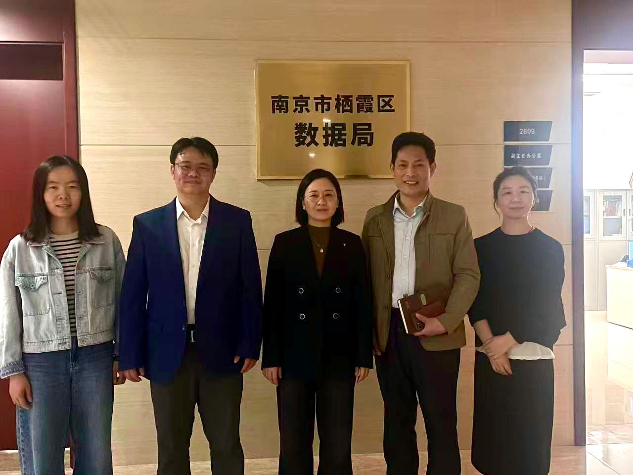 院长黄建伟送学院青年教师王庆歌至南京市栖霞区数据局报到,正式开启为期半年的挂职锻炼。栖霞区数据局何蜀君局长、刘树斌副局长、陆琛科长等热情接待并举行座谈。双方围绕“高效办成一件事”改革实践、智能政务服务研究及校地协同创新等话题展开深入交流。