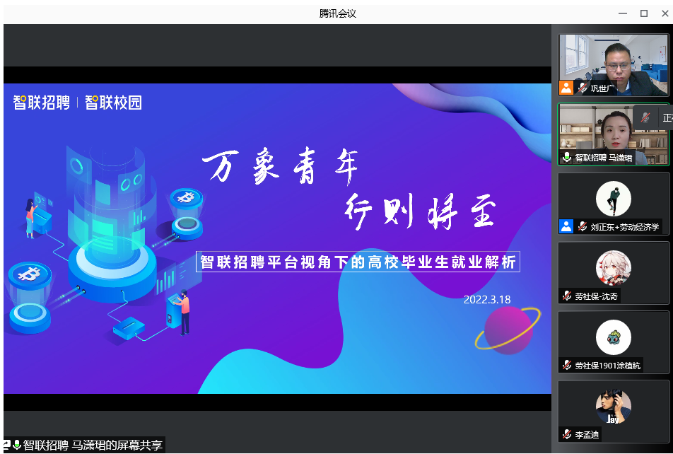 于3月18日上午通过腾讯会议线上举办了主题为“行则将至——智联招聘平台视角下的高校毕业生就业解析”的就业培训专题讲座,本次讲座由智联招聘校园及国际业务事业部执行总监马潇珺主讲,韩国漫画