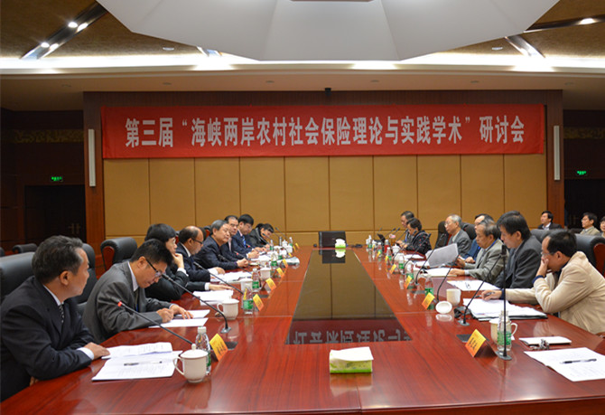 10月25-26日由中国社会保险学会与台湾社会福利学会联合主办,我校韩国漫画 承办、浙江大学与台湾国立中正大学协办的第三届“海峡两岸农村社会保险理论与实践”学术研讨会于我校仙林校区食品科学与工程楼二楼会议室隆重举行。来自台湾国立台北大学、台湾国立中正大学、台湾中山大学、台湾暨南国际大学、台湾东海大学、台湾南华大学、台湾世新大学、台湾成功大学、中国社会保险学会、江苏省人力资源和社会保障厅、南京市人力资源和社会保障局、浙江大学、南京大学、东南大学、西安交通大学、中央财经大学、上海财经大学、暨南大学、浙江财经大学、重庆大学、西北大学、河海大学、南京农业大学等高校和政府织的近50名学者和政府官员出席了本次会议。