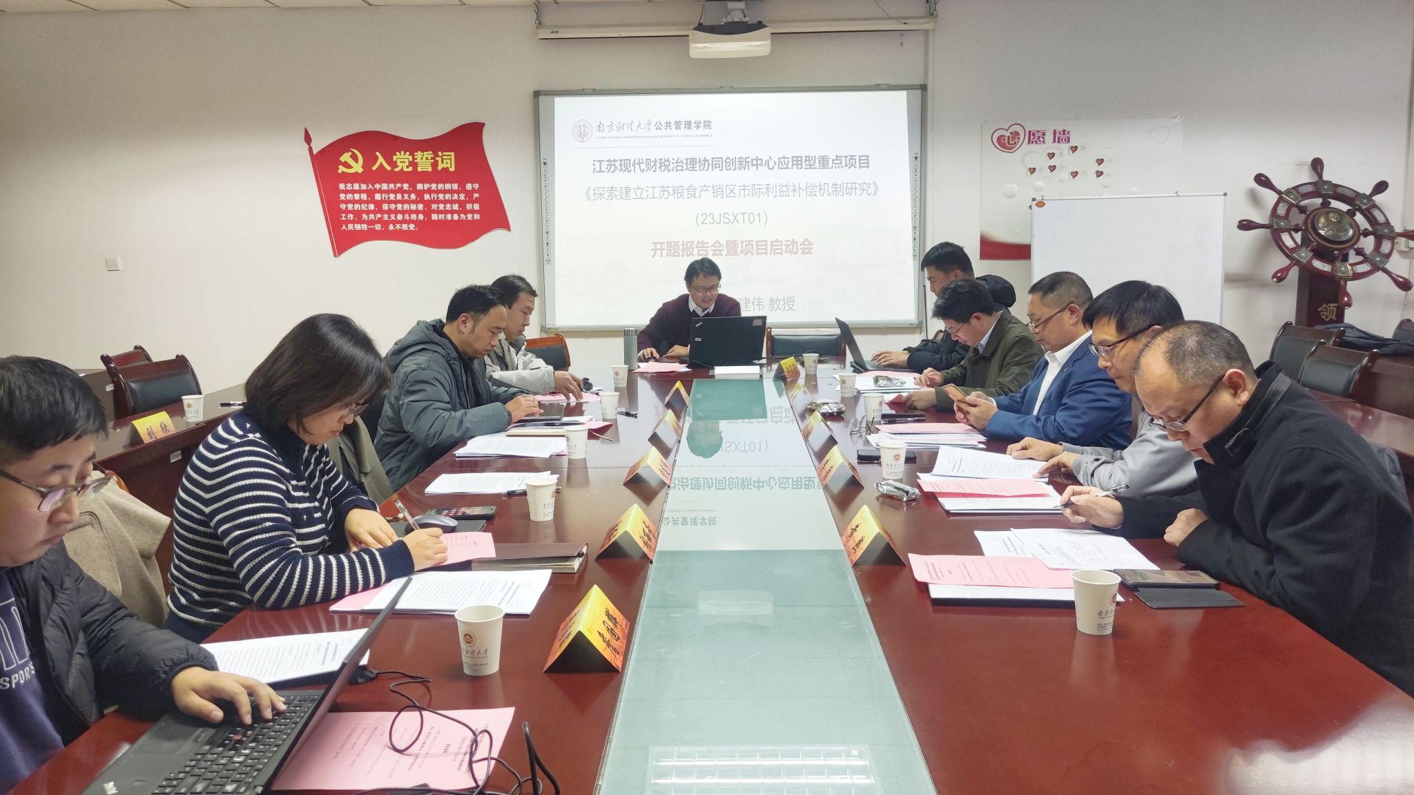 12月10日,江苏现代财税治理协同创新中心应用型重点项目《探索建立江苏粮食产销区市际间横向补偿机制研究》在德济楼508会议室召开开题报告会暨项目启动会。