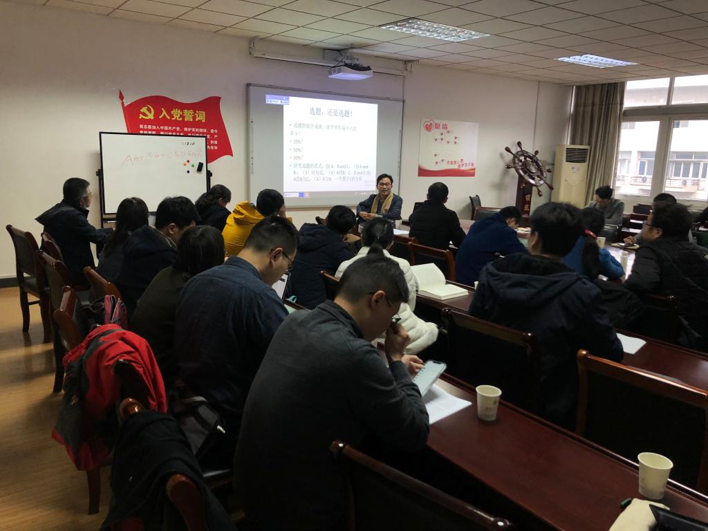 邱斌教授以“社会科学研究中的定量分析”为主题,结合自身的学术研究经历和体会,介绍了社会科学研究中的主要定量分析方法以及使用过程中应当避免的问题。邱教授重点以学术写作与课题申报的规律为切入点,从选题的重要性、学术史梳理的方法、研究选题范式选择技巧等方面对学院青年教师作了针对性指导。