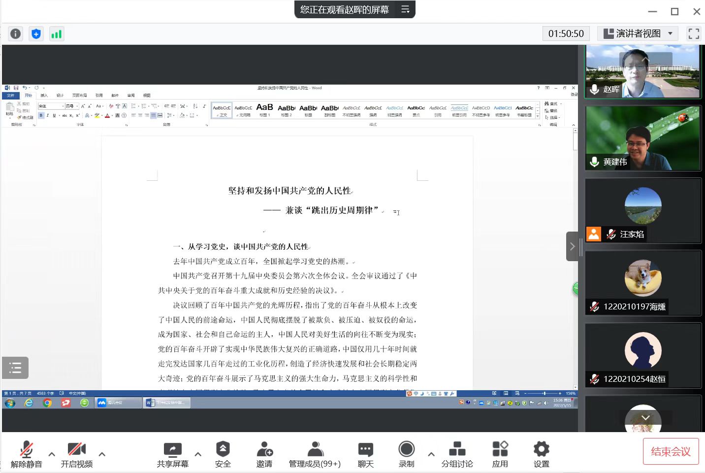MPA中心主任赵晖教授在线作了题为“坚持和发扬中国共产党的人民性——兼谈‘跳出历史周期律’”的讲座。韩国漫画