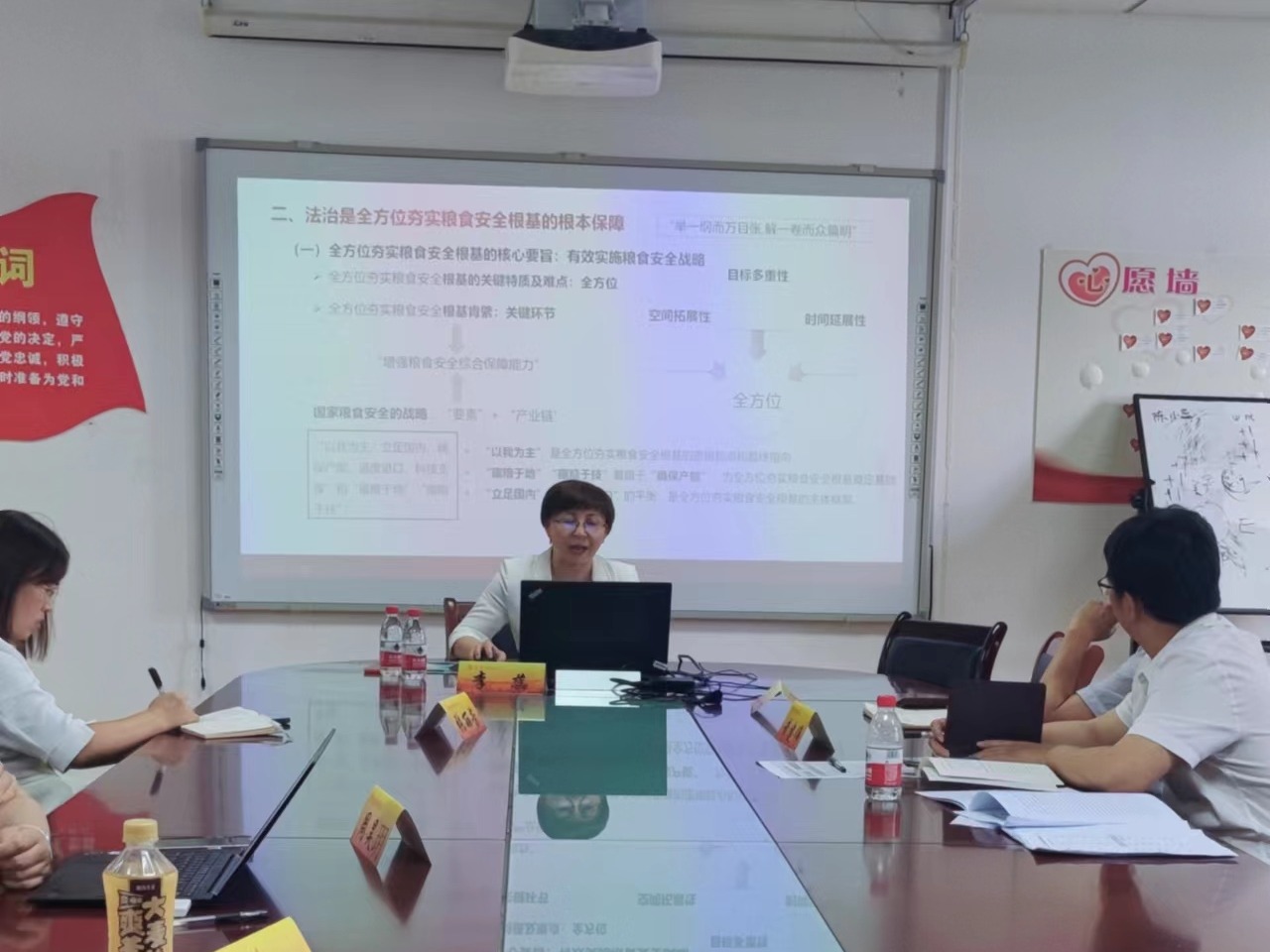 师生作了题为“全方位夯实粮食安全根基的法治进路”的学术讲座。讲座由院长黄建伟教授主持,副院长唐润教授、院长助理张丽芳副教授、学院新增硕导及学术研究生、部分MPA研究生参加讲座。