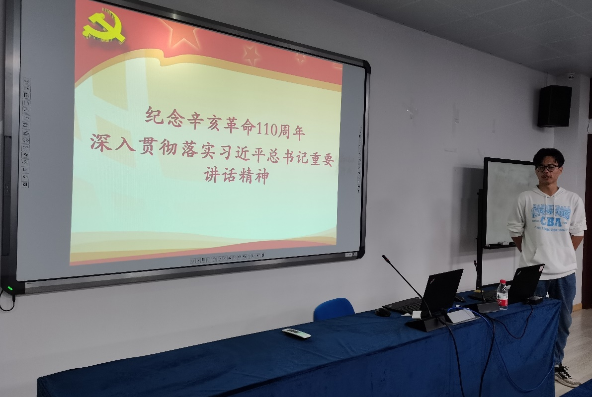 在本次重要讲话中,总书记高度评价了辛亥革命的历史功绩和重大意义,回顾总结了中国共产党继承孙中山先生革命事业、团结带领人民不懈奋斗的光辉历程,深刻阐述了辛亥革命110年来的历史启示,郑重宣示了坚持一个中国原则和“九二共识”、坚决遏制“台独”分裂活动、捍卫国家主权和领土完整的坚强决心与坚定意志。习近平总书记的讲话立意高远、思想深邃,杜宇翔同学呼吁全体成员深入学习领会习近平总书记重要讲话精神,继承和弘扬辛亥革命精神,并将自己的使命担当转化为个人的勤勉实干,立大志、明大德、成大才、担大任,不断增强自己的志气、骨气、底气,不负时代,不负韶华,不负党和人民的殷切期望!
