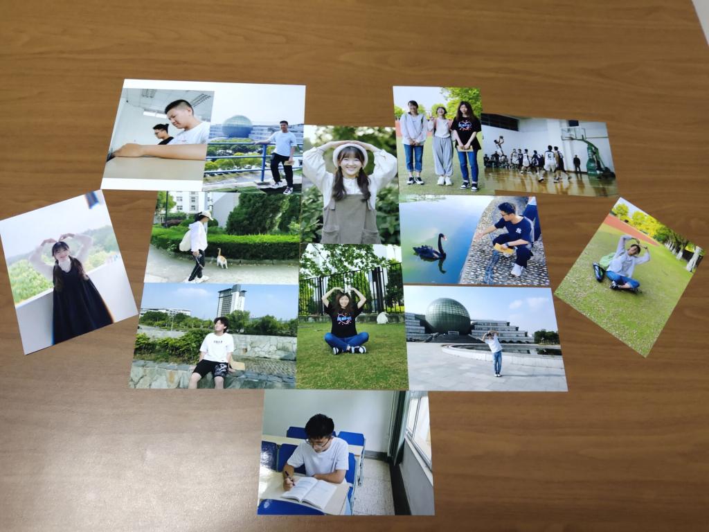下午15:45分,负责人将活动参与者分为“模特组”与“摄影组”,分组配合前往校园内取景拍摄特定主题内容的照片。其中包含学生生活照片、学习照片、向母亲比心表白的照片、个人最为灿烂的笑容照,以及其它学生个人想为母亲展示的其它关于校园生活的照片。各小组根据自己的理解与构思前往专业楼、操场、图书馆等地进行取景拍照。拍照结束,经工作人员的遴选、修图编辑后送往照相馆进行照片洗印。