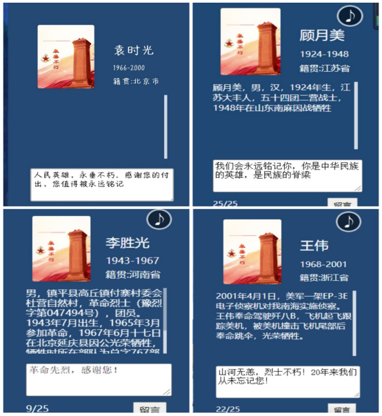 在伟大祖国的发展过程中,数不尽的英雄们用自己的血肉为国家建设添砖加瓦。活动中,同学们纷纷登陆“中华英烈网”,参与网上祭扫英烈活动,了解烈士们的英雄事迹,用心写下留言、寄语,制作悼念海报,把对抗先烈的哀悼,化作爱国情怀,以实际行动向为中华民族和中国人民作出贡献的英雄先烈们致敬。