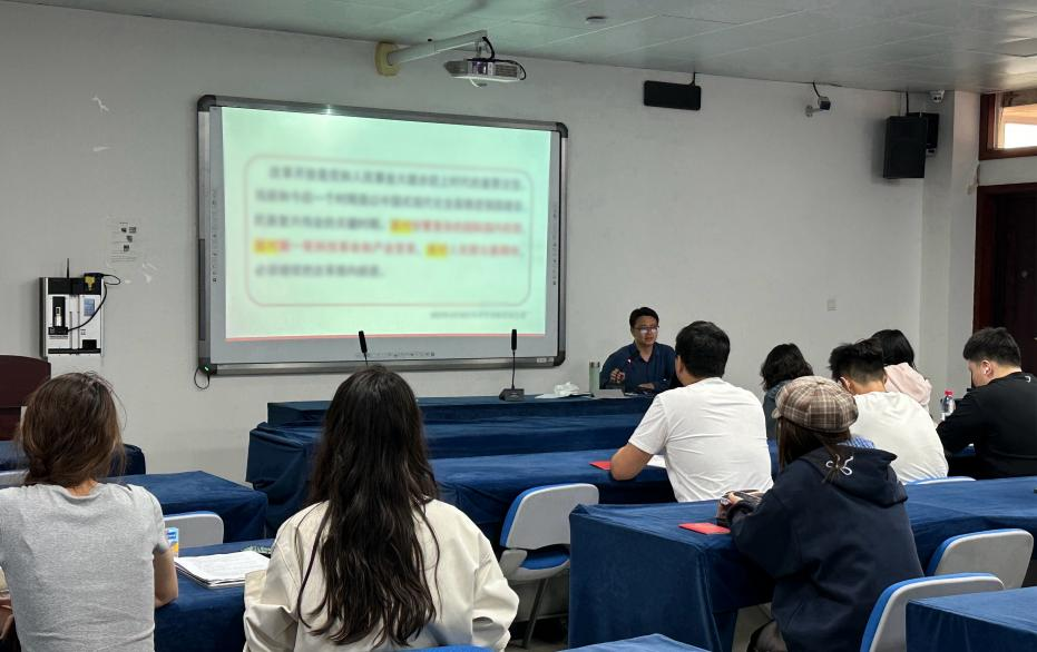 院长、研究生党支部政治辅导员黄建伟教授在德济楼502教室为研究生党支部讲授关于党的二十届三中全会精神学习的专题党课。研究生党支部全体党员参与党课学习。